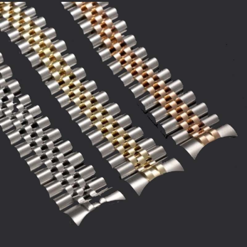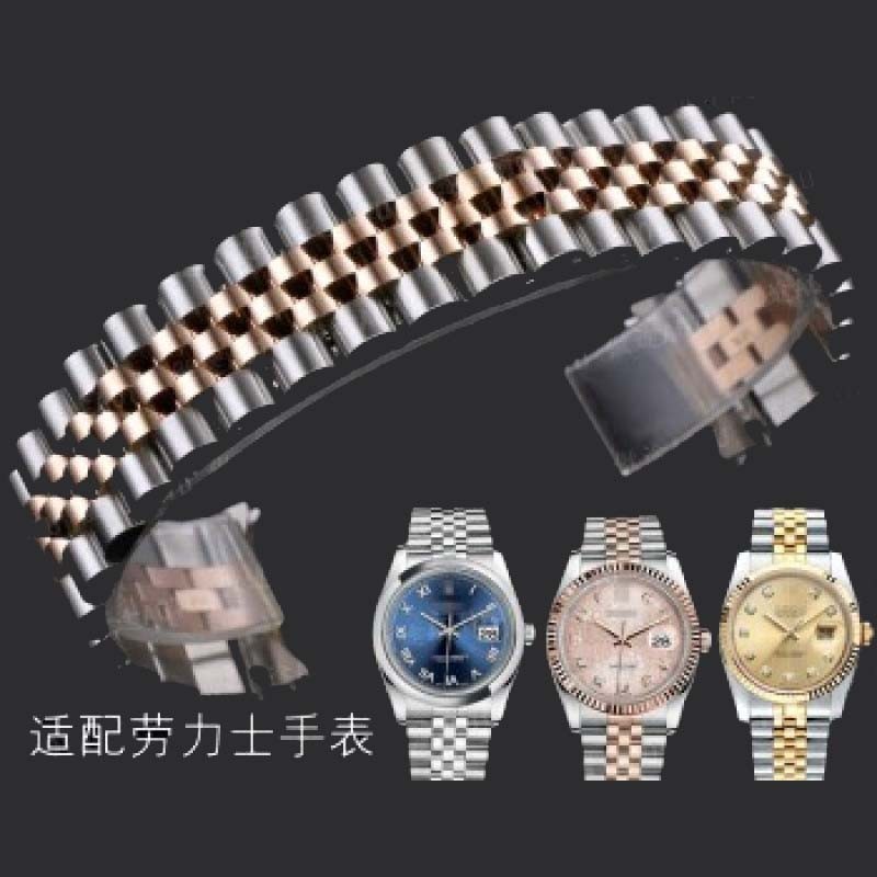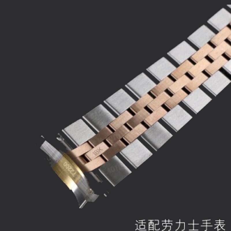 精钢手表带钢表带包金表链 间玫瑰金色
